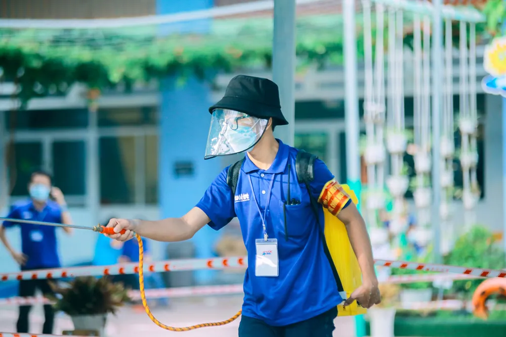 Tham gia hỗ trợ phun khử khuẩn trường lớp