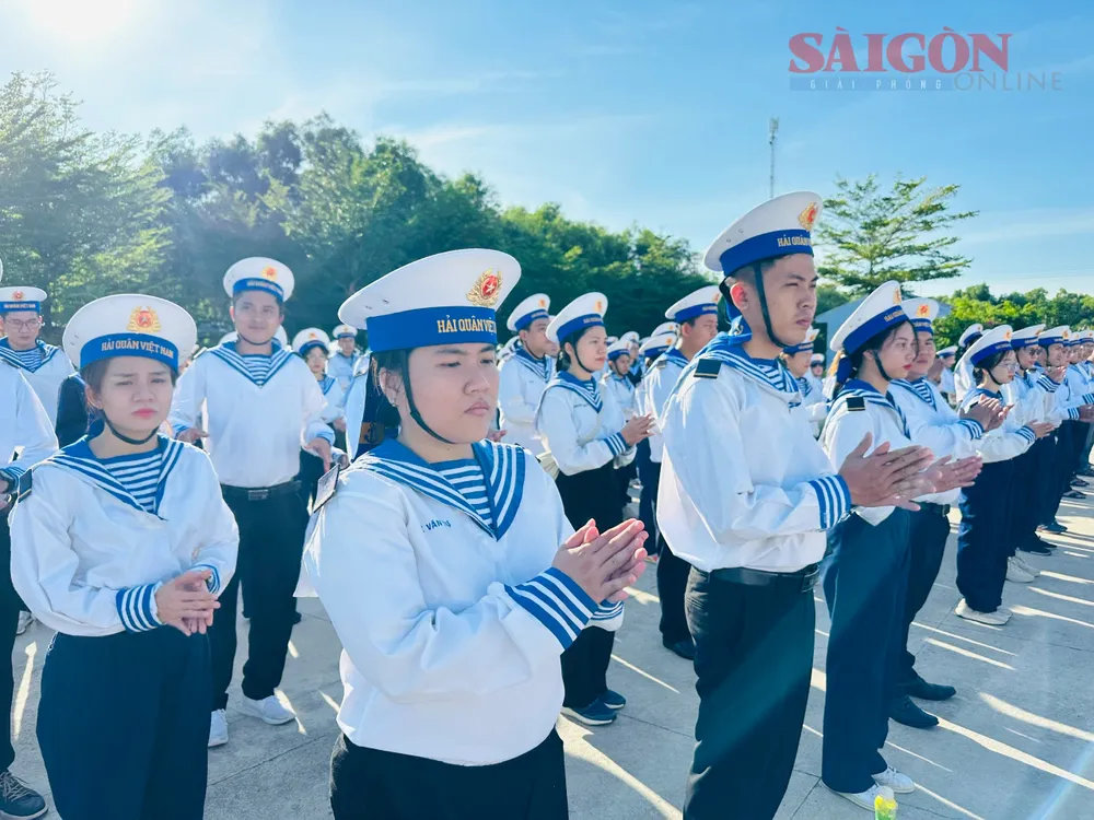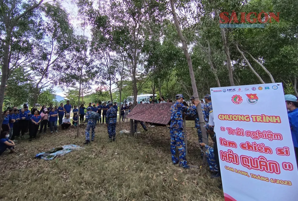 Các bạn trẻ tham gia "Trải nghiệm làm chiến sĩ hải quân" |