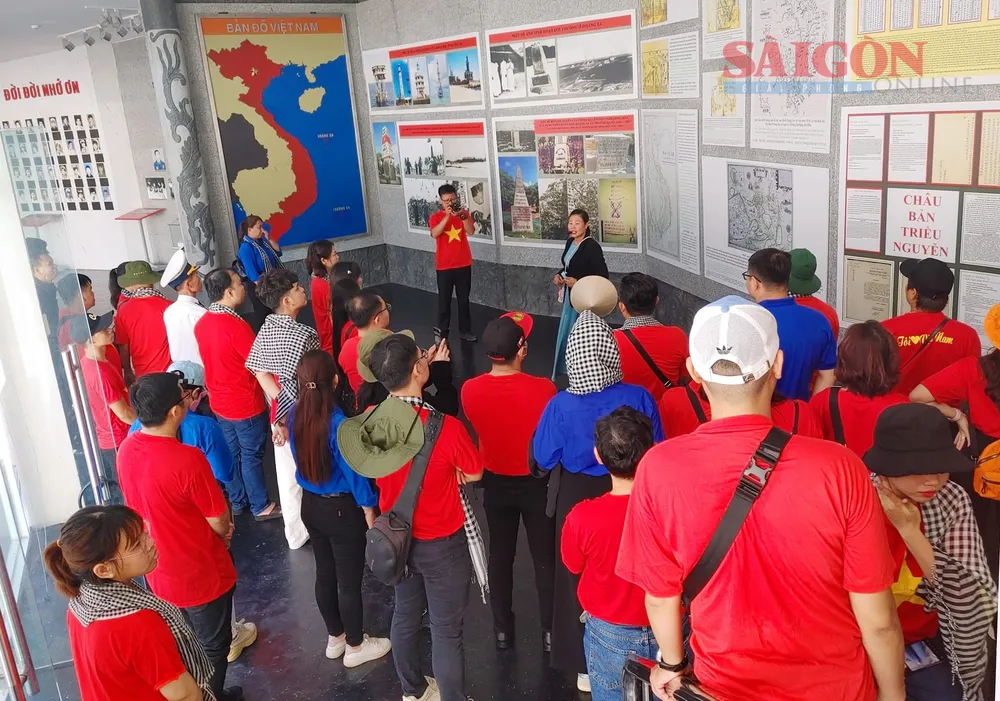 Các đoàn viên, thanh niên tham quan tìm hiểu và chụp ảnh lưu niệm tại Khu tưởng niệm chiến sĩ Gạc Ma |