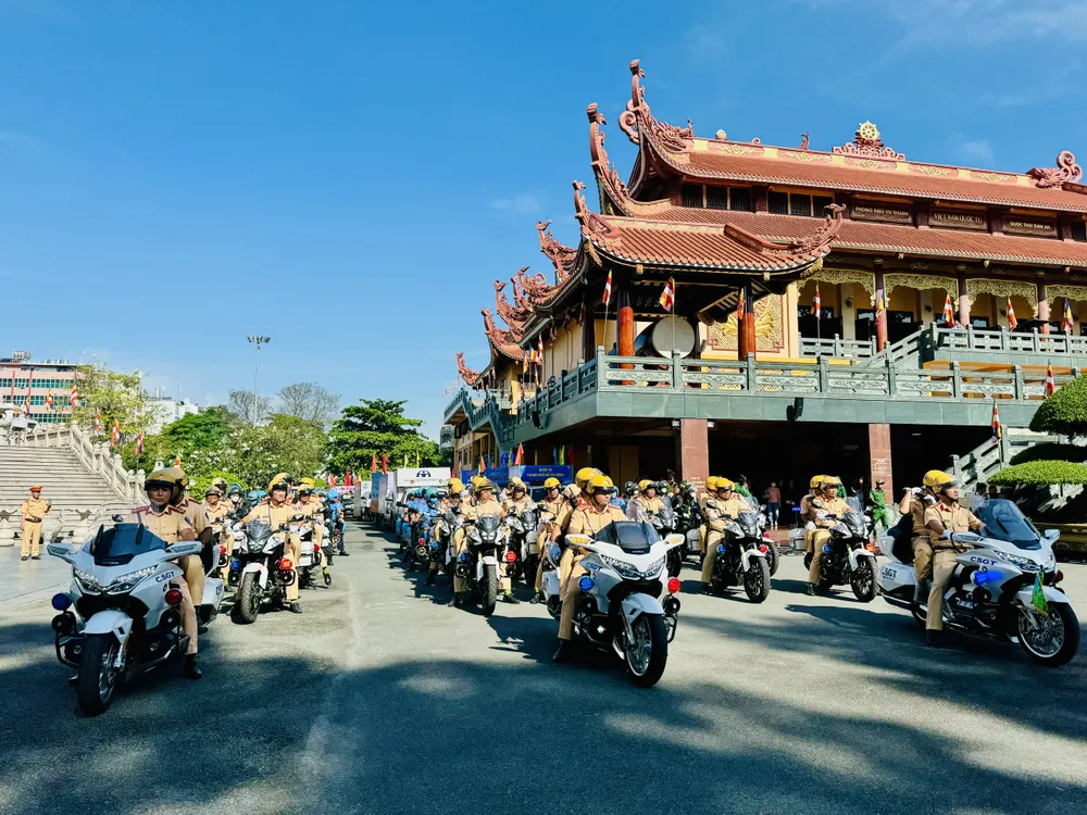 Sau lễ tưởng niệm, cầu siêu, các lực lượng chức năng tại TPHCM ra quân tuyên truyền trật tự ATGT trên địa bàn TPHCM. Ảnh: CHÍ THẠCH |