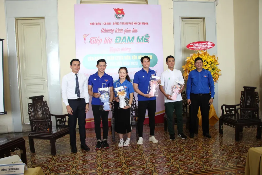 Trong chương trình, các bạn trẻ được giao lưu “Tiếp lửa đam mê” cùng 4 gương đoàn viên, thanh niên tiêu biểu, gồm: diễn viên xiếc - công dân trẻ tiêu biểu TPHCM năm 2019 Hiển Phước - Thanh Hoa, huấn luyện viên Taekwondo Lê Huỳnh Châu, vận động viên Trương Trần Nhật Minh.