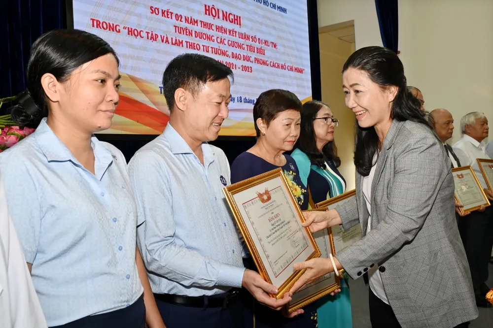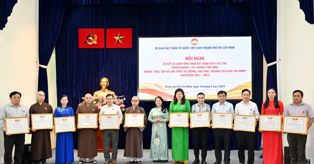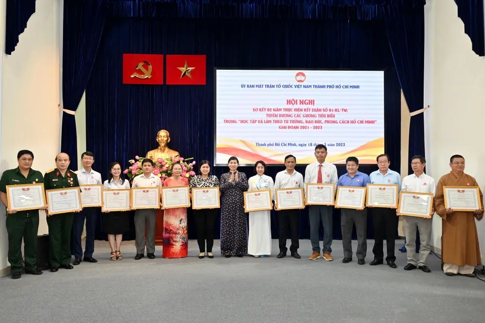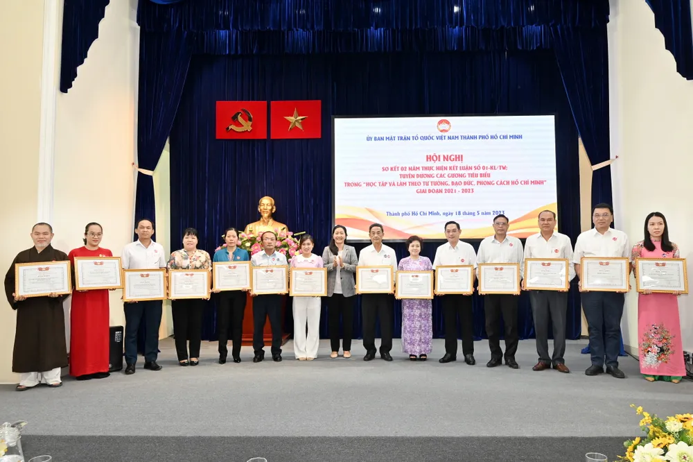Dịp này, Ban Thường trực Ủy ban MTTQ Việt Nam TPHCM tặng bằng khen cho 55 tập thể, 103 cá nhân có nhiều thành tích trong học tập và làm theo tư tưởng, đạo đức, phong cách Hồ Chí Minh trong hệ thống MTTQ TPHCM giai đoạn 2021 – 2023.
