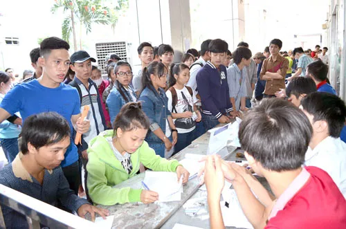 Thí sinh đến nộp hồ sơ xét tuyển vào Trường ĐH Công nghiệp TPHCM năm 2015. (Ảnh: MAI HẢI)