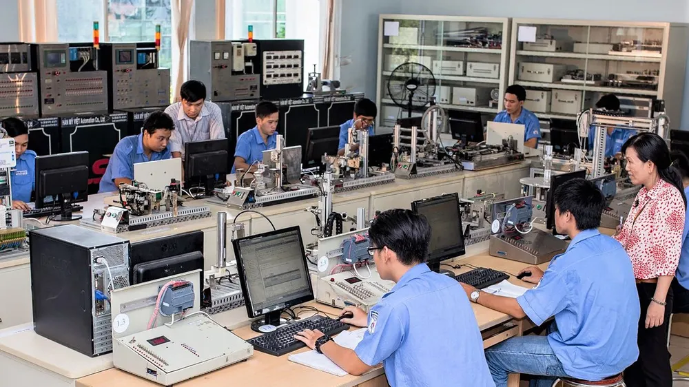 Sinh viên ngành Điện - Điện tử Trường Cao đẳng Kỹ thuật Cao Thắng trong giờ học thực hành