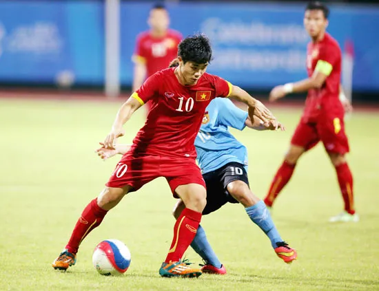 Công Phượng đi bóng trước hàng phòng ngự đối phương