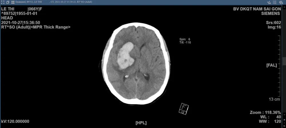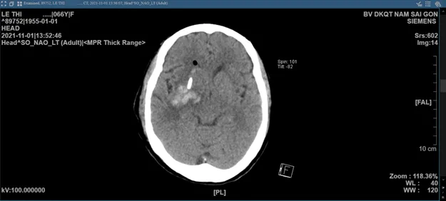 Bệnh nhân L.T.D (66 tuổi) được người nhà đưa cấp cứu đến Bệnh viện Đa khoa Quốc tế Nam Sài Gòn, nhập viện trong tình trạng tri giác lơ mơ, liệt nửa mặt, liệt và mất cảm giác hoàn toàn nửa người bên trái, huyết áp cao.