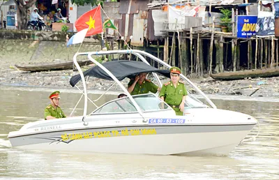 Chiếc ca nô trị giá 25.000USD do bà Lê Thị Giàu, Giám đốc Công ty cổ phần đầu tư Tấn Hưng, tài trợ.