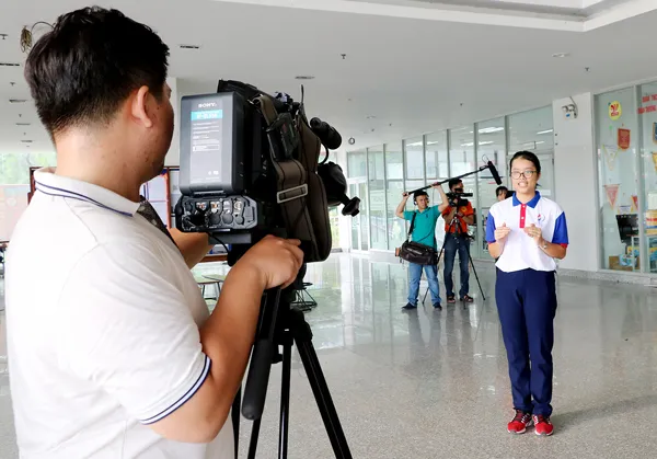 Trúc Hà thực hành dẫn một chương trình truyền hình