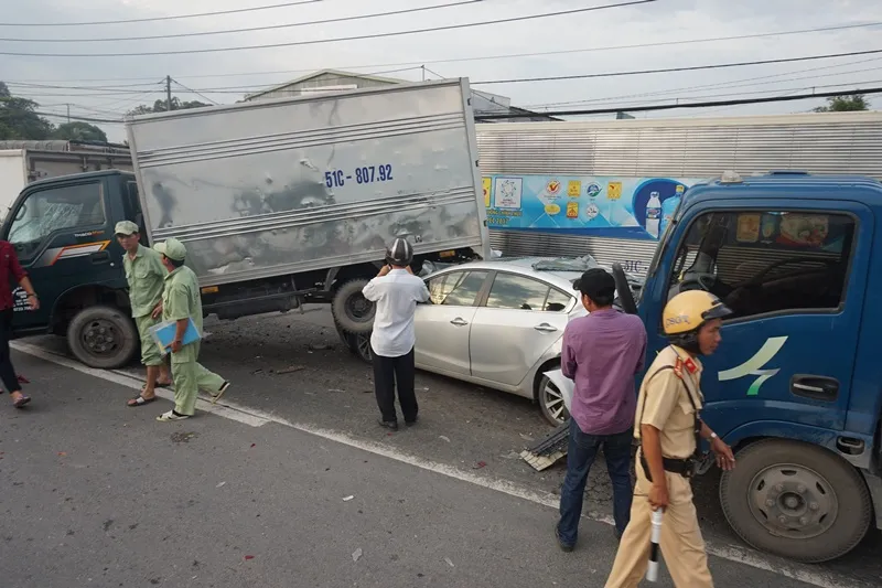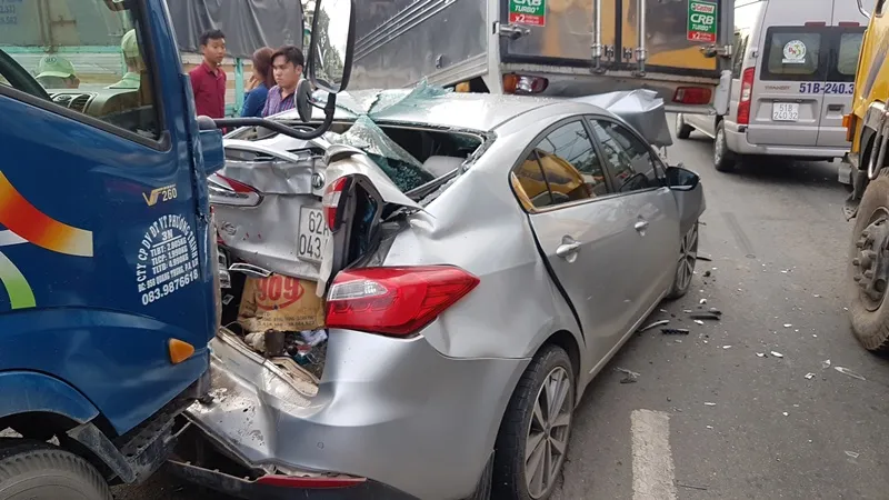 Khi vừa trên Quốc lộ 22 đoạn qua ngã tư Giếng Nước, thuộc ấp Đình, xã Tân Xuân, huyện Hóc Môn thì bất ngờ tông vào đuôi ô tô 4 chỗ mang BKS: 62A- 043.49 do tài xế (khoảng 40 tuổi) điều khiển rồi đẩy phương tiện này đâm vào đuôi chiếc xe tải mang BKS: 51C-807.92 do tài xế khoảng hơn 30 tuổi điều khiển.