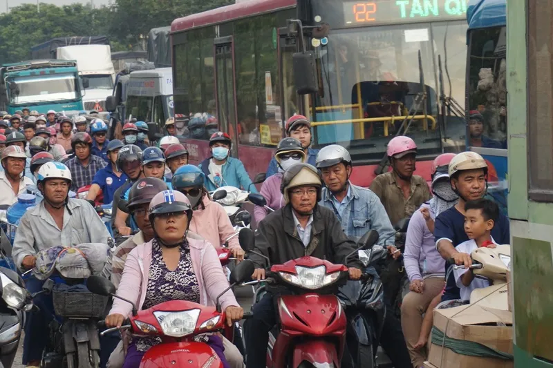 Do vụ tai nạn xảy ra vào khung giờ cao điểm nên các phương tiện lưu thông qua khu vực ùn ứ kéo dài