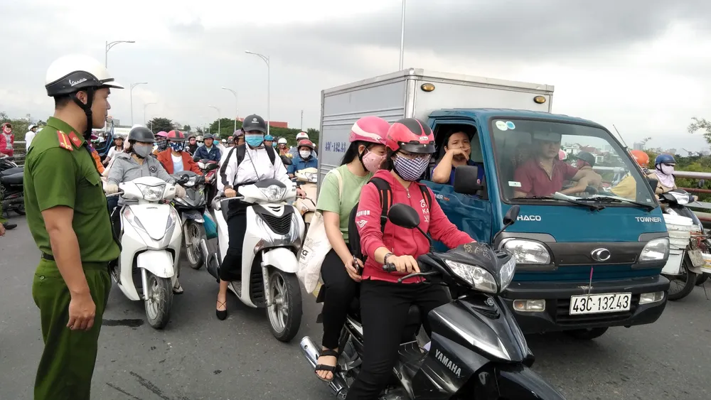 Giao thông qua cầu Cẩm Lệ bị ách tắc sau tai nạn