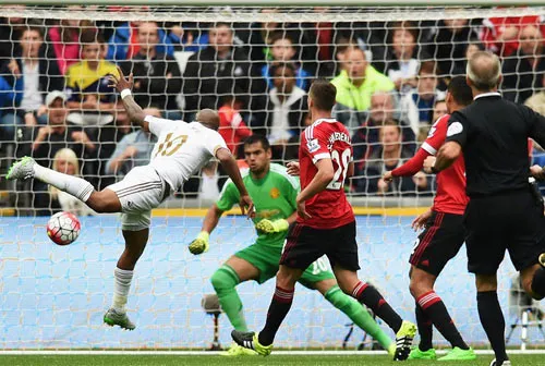 Andre Ayew trống trải đánh đầu gỡ hòa 1-1 cho Swansea