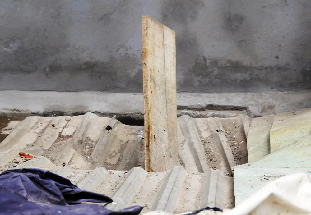 Cũng theo người nhà ông Lộc, cách đây 1 tháng, 1 cây sắt phi 10 dài 2m cũng từ công trình khách sạn này rơi xuống nhà bếp ông Lộc…