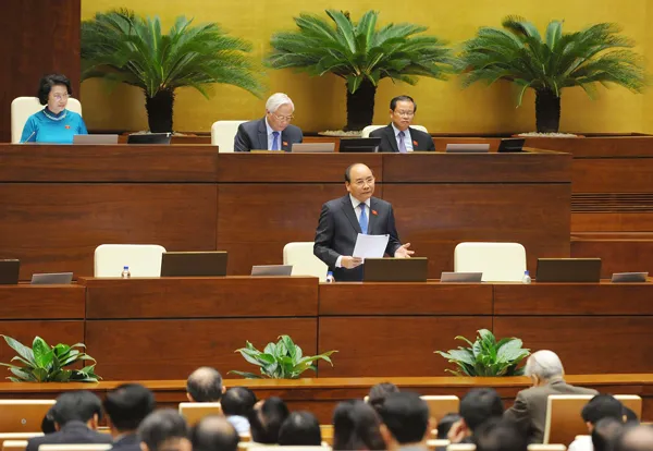 Thủ tướng Nguyễn Xuân Phúc trả lời chất vấn trước Quốc hội trong sáng 17-11-2016. Ảnh: VGP