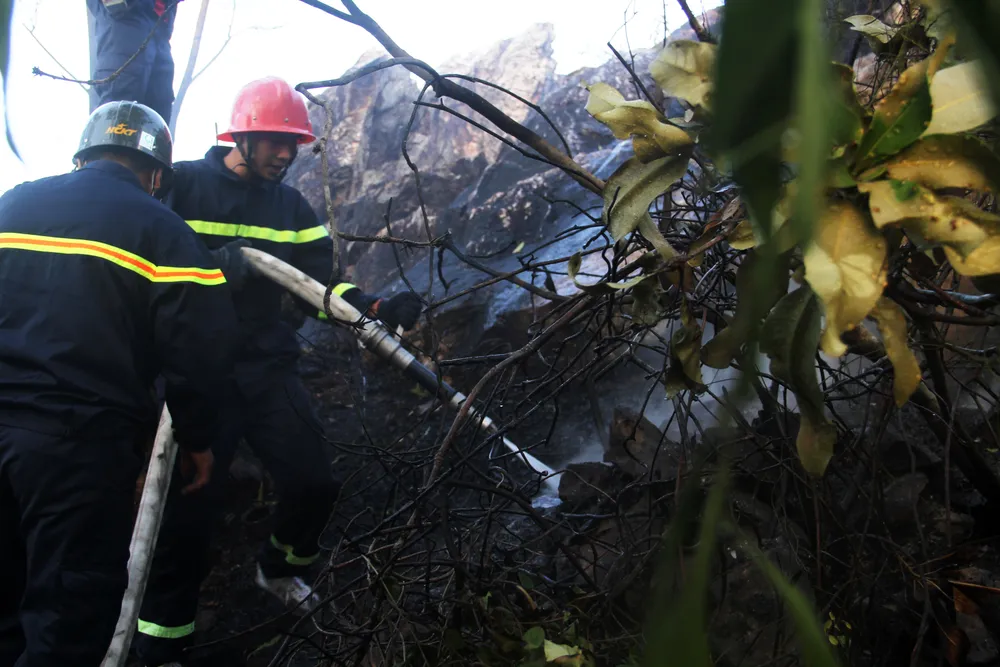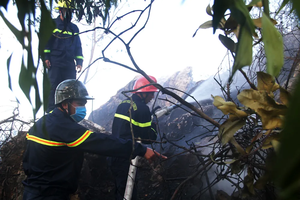 “Đám cháy ở vị trí đồi núi dốc cao, nằm cách khu dân cư 2km, thời tiết nóng bức kèm theo gió mạnh khiến công tác chữa cháy gặp rất nhiều khó khăn”, lãnh đạo Phòng Cảnh sát PCCC và CNCH cho biết.