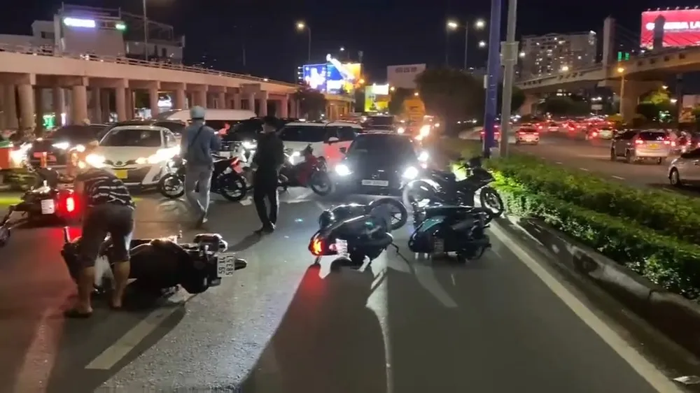 Khoảng 20 giờ 45 cùng ngày, nhóm quái xế di chuyển qua cầu Sài Gòn (hướng từ quận Bình Thạnh đi TP Thủ Đức) để so kèo biểu diễn tốc độ. Lúc này, lực lượng chức năng đã tiến hành chặn 2 đầu cầu. Nhiều đối tượng thấy công an nên tìm cách bỏ chạy tán loạn.