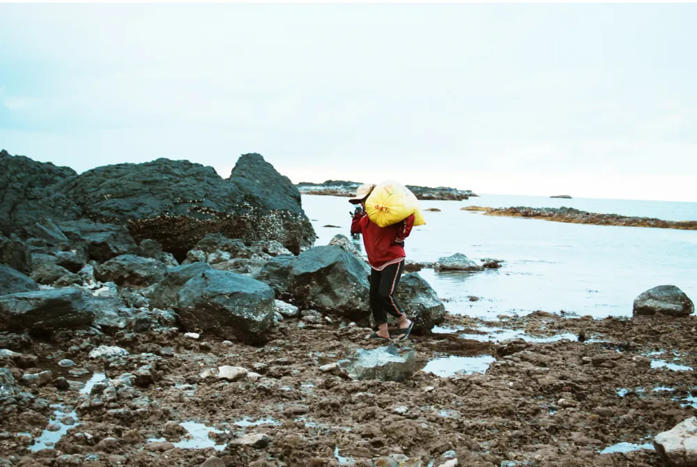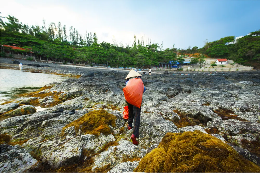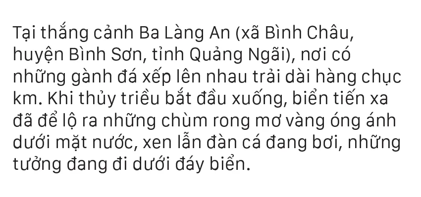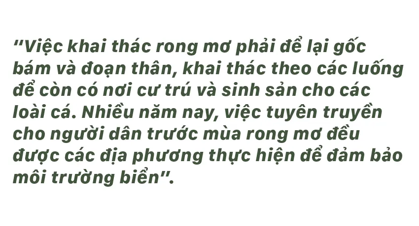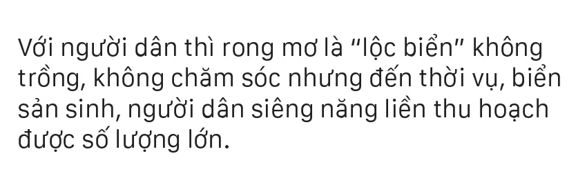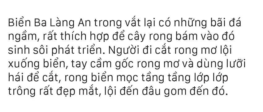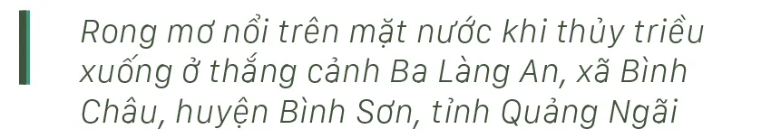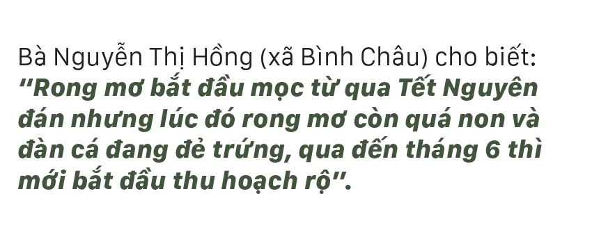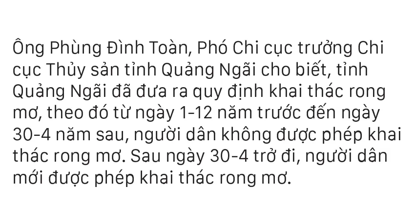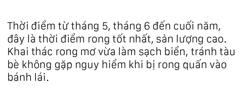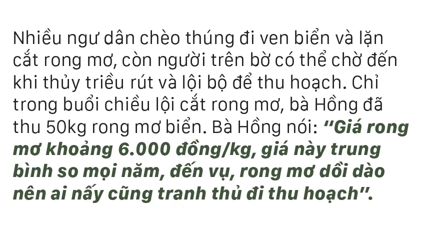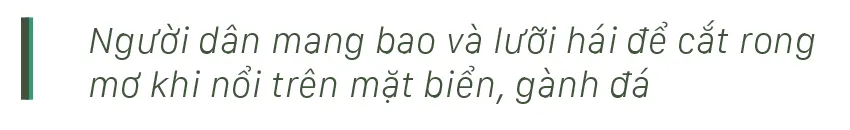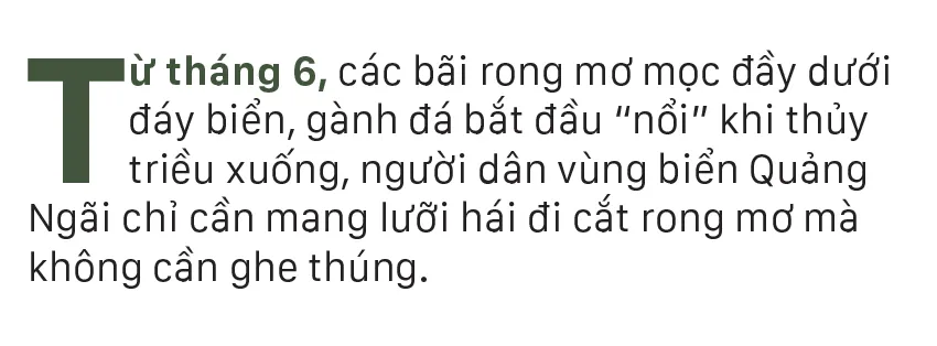 Từ tháng 6, các bãi rong mơ mọc đầy dưới đáy biển, gành đá bắt đầu “nổi” khi thủy triều xuống, người dân vùng biển Quảng Ngãi chỉ cần mang lưỡi hái đi cắt rong mơ mà không cần ghe thúng.