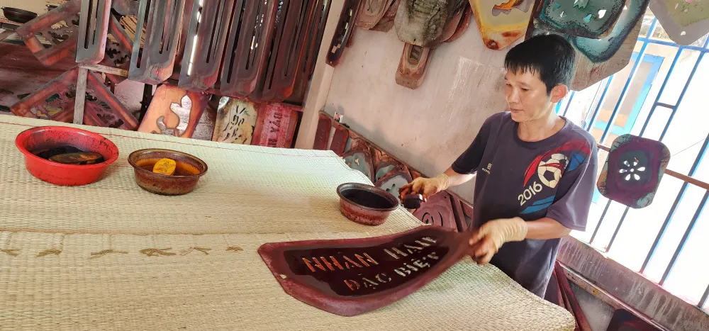 “Cách đây hơn 10 năm, làng này có khoảng gần 20 người in chiếu bông nhưng thời gian này cũng chỉ còn vài người làm. Hiện mỗi ngày gia đình tôi in khoảng 100 chiếc chẳng thấm tháp gì so với trước đây in vài trăm chiếc. Công việc này mang lại thu nhập cũng chỉ đủ chi tiêu dùng hàng ngày chứ không có dư nhiều. Hiện nay, người dân cũng đã đổi sang chiếu màu, chiếu hai da (nhuộm lát xong dệt thành chiếu) nên lượng chiếu in bông giảm đáng kể”, ông Tiến nói.