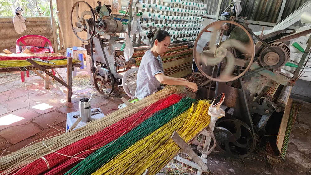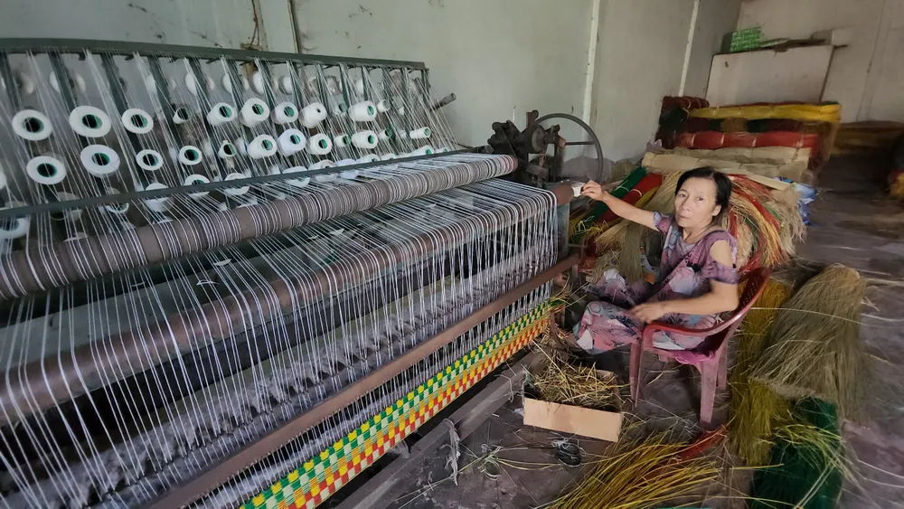 Bà Dâng cho hay, trước đây cả làng dệt chiếu thủ công, hai lao động dệt mỗi ngày cho ra khoảng 4-5 chiếc chiếu nhưng nay đã có máy dệt, chỉ khoảng 45 phút/chiếc với một lao động. Dệt máy giảm bớt nhân công lại cho năng suất cao, chiếu đều đẹp, vì vậy đến nay trong làng hầu như không còn dệt chiếu thủ công nữa.