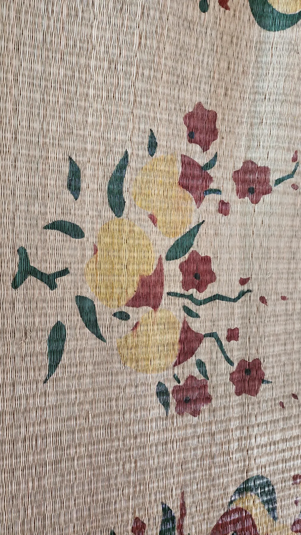Ông Tiến cho biết, ông là một trong số người làm nghề chiếu may mắn vì có được một người con nối nghiệp in bông chiếu. Một chiếu làm khoảng 5 đến 10 phút theo khuôn có sẵn: rồng, phụng, bông, bướm, chữ song hỷ hoặc logo tên đại lý bán hàng… tùy theo yêu cầu của khách hàng trên cơ sở những gì cơ sở sản xuất có. Công việc cơ bản cũng không khó, đầu tiên trộn màu, đây là công đoạn khó nhất, sau khi trộn màu sẽ quét lên chiếu sau đó bỏ vào máy hấp khoảng 60 phút sẽ nổi màu lên. Màu chỉ có 3 màu: xanh, đỏ và vàng. Giá in mỗi chiếc chiếu khoảng 15.000 đồng.