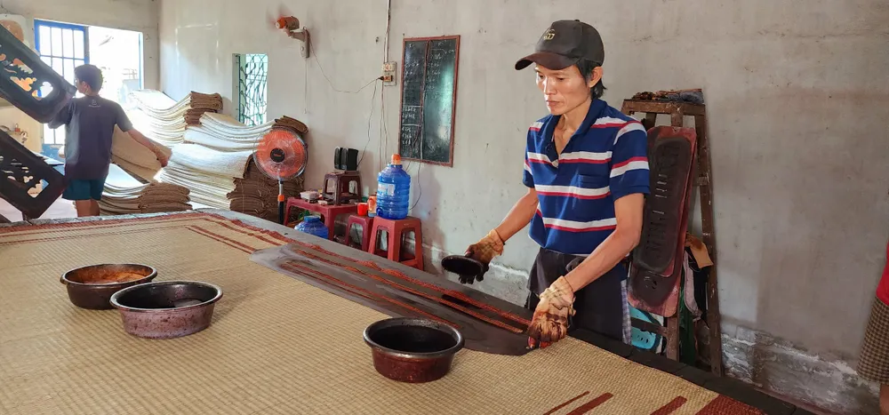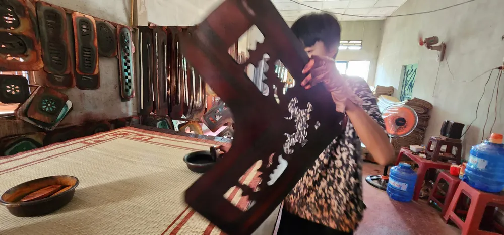 Hiện nay gia đình bà Dâng làm bán lai rai mỗi tháng cũng được khoảng 150 chiếc chứ không có nhiều đơn đặt hàng như trước nữa.
