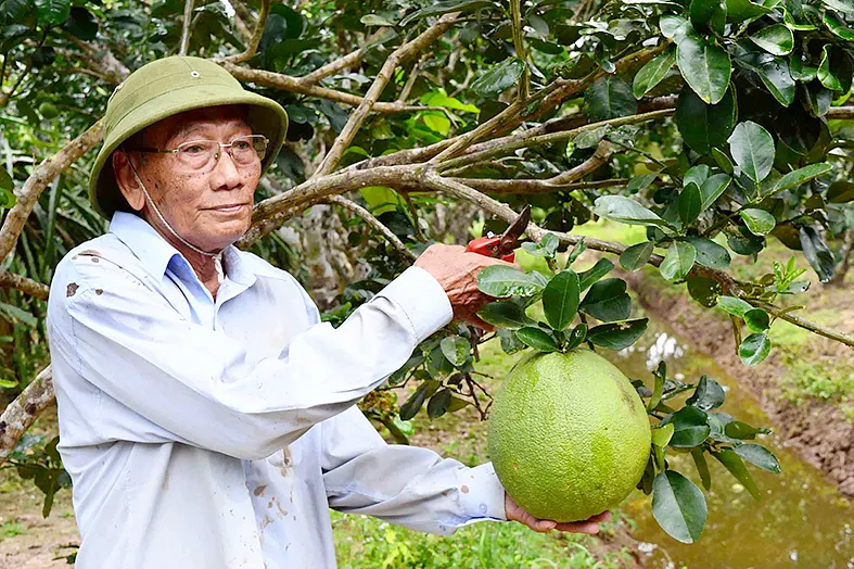 Vườn bưởi của tỷ phú Ông Văn Hùng, nguyên Thiếu tá quân y Tỉnh đội Sóc Trăng chỉ rộng 4ha nhưng cũng cho 40-50 tấn/năm, thu về 800-850 triệu đồng. Lúc đầu ông trồng bưởi Năm Roi, sau thêm cả bưởi da xanh, hiệu quả vượt trội so với thời kỳ đầu trồng mía. Cái hay của ông là cho cây bưởi ra hoa quanh năm, tạo ra “trái nghịch mùa”. Nếu “thuận”, ra Giêng đã hết trái nhưng chỉ còn gần tháng nữa là tết mà cây trong vườn vẫn trĩu quả, xanh mướt. “20-30 tấn trái nghịch mỗi năm, giá bán khác hẳn. 8 ngày trước tết, lái trên thành phố xuống hốt trọn. Họ nói cái vị ngọt của bưởi ven biển đặc biệt lắm”. Đã mấy chục năm rồi, chưa bao giờ ông bị “dội” hàng cả. Mấy năm nay con tôm khuấy động đất cù lao.