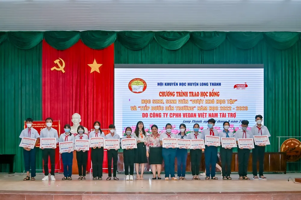 Từ năm 2013 đến nay, Công ty CPHH Vedan Việt Nam liên tục đồng hành cùng Hội khuyến học huyện Long Thành trong việc trao học bổng cho các em học sinh - sinh viên nhân dịp vào năm học mới. Sau 10 năm, nhiều tấm gương học sinh nghèo vượt khó đã vươn lên, đạt được những thành tích cao trong học tập, có nhiều em sau khi tốt nghiệp ra trường đã trở về địa phương làm việc.