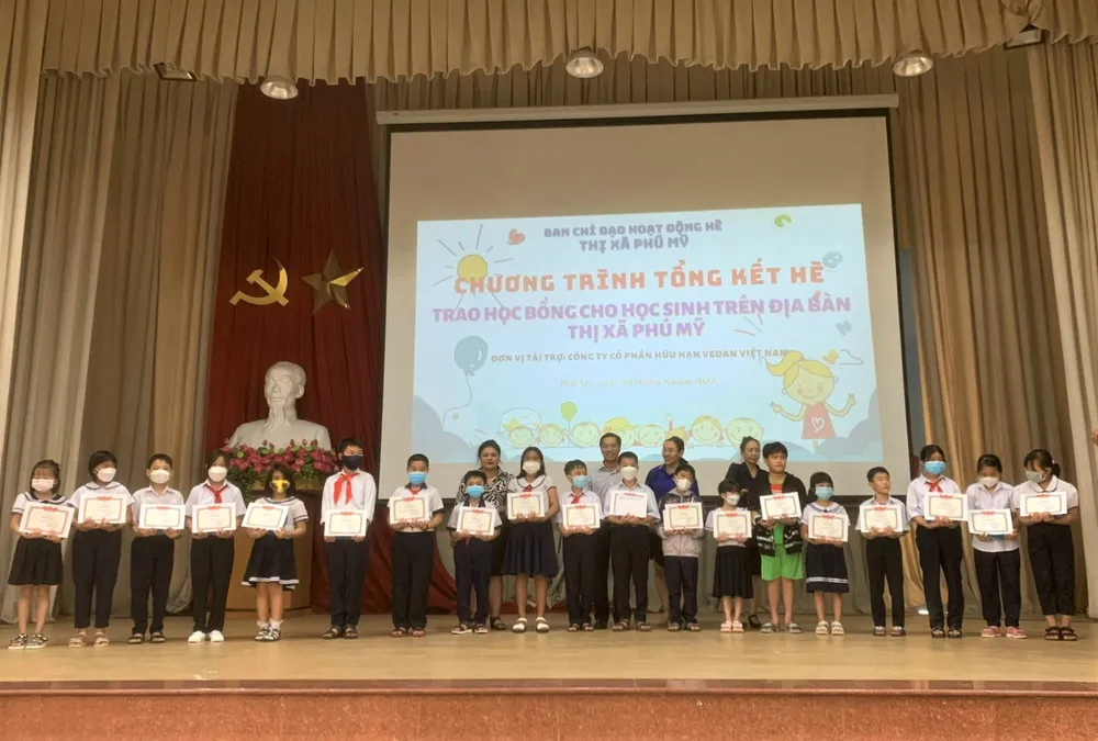 Trong không khí hân hoan ngày tựu trường năm học 2022-2023, Công ty CPHH Vedan Việt Nam đã phối hợp cùng Hội Khuyến học thị xã Phú Mỹ tổ chức trao tặng các suất học bổng khuyến học - khuyến tài dành cho các em học sinh nghèo hiếu học trên địa bàn. Hoạt động này đã được Vedan Việt Nam và Hội Khuyến học thị xã Phú Mỹ duy trì liên tục 11 năm qua với gần 400 suất học bổng gửi đến các em học sinh có thành tích xuất sắc trong học tập. Nhằm duy trì và nhân rộng hoạt động đầy ý nghĩa này, trong năm học 2022-2023, Vedan Việt Nam đã tài trợ 37 suất học bổng với tổng giá trị gần 40 triệu đồng. Đây chính là những lời động viên, cổ vũ đến với các em học sinh, giúp các em có thêm động lực học tập, đồng thời thể hiện được sự quan tâm của Vedan Việt Nam đối với thế hệ trẻ.