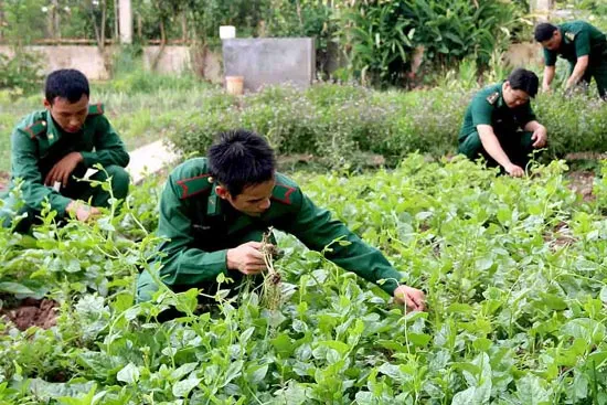 Cán bộ, chiến sĩ đồn biên phòng Long Hòa (Trà Vinh) tăng gia sản xuất cải thiện bữa ăn