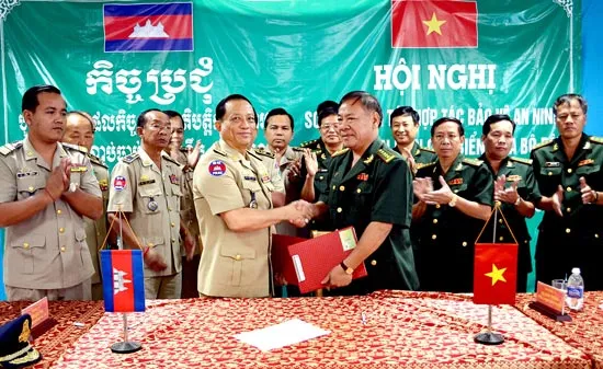 Bộ đội Biên phòng tỉnh Kiên Giang ký kết với lực lượng bảo vệ biên giới tỉnh Kam-pốt (Campuchia) trong hợp tác bảo vệ đường biên giới giữa 2 nước
