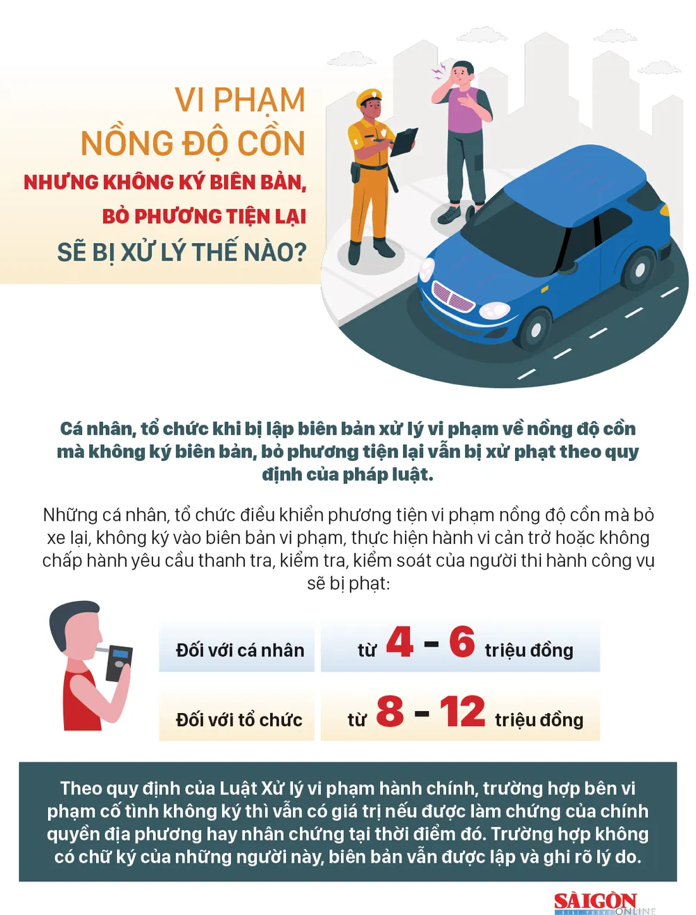Vi phạm nồng độ cồn nhưng không ký biên bản, bỏ phương tiện lại sẽ bị xử lý thế nào?