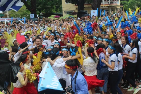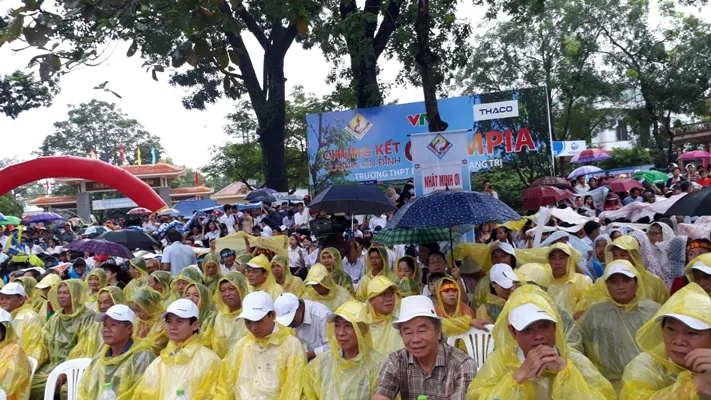 Ngay từ sáng 27-8, tại điểm cầu trường THPT Hải Lăng (Quảng Trị) mưa như trút nước nhưng thầy trò Trường THPT Hải Lăng đã có mặt từ rất sớm để chuẩn bị cổ vũ cho Phan Đăng Nhật Minh cùng các nhà leo núi tham dự chung kết năm cuộc thi Đường lên đỉnh Olympia lần thứ 17.
