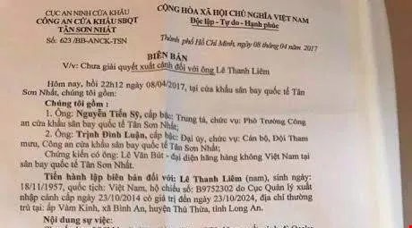 Biên bản chưa giải quyết xuất cảnh đối với ông Liêm