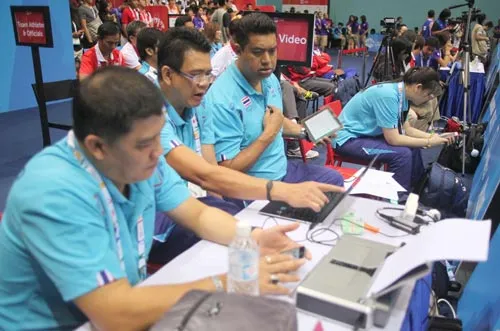Theo đó, “kiến trúc sư” Kiattipong cùng 2 chuyên gia của Liên đoàn Bóng chuyền Thái Lan ngồi ở khu vực riêng, liên tiếp đánh giá và phân tích các vị trí trên sân, lối chơi cũng như điểm mạnh và yếu của Từ Thanh Thuận, Nguyễn Hữu Hà, Nguyễn Hoàng Thương và đặc biệt là cây chuyền 2 Giang Văn Đức, trước khi tư vấn cho HLV trưởng Monchai chỉ đạo các học trò thay đổi chiến thuật trong sân.
