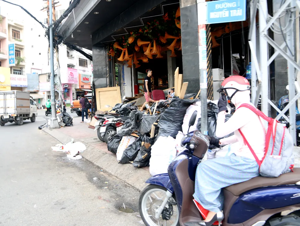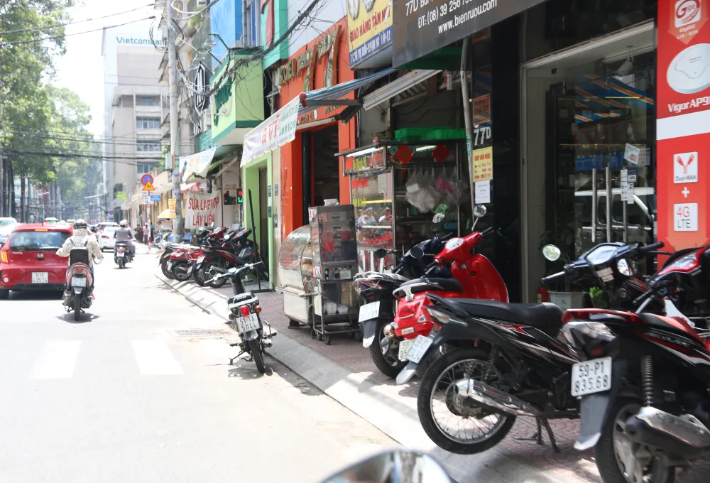 Một cửa hàng trên đường Nguyễn Trãi, quận 5 chiếm dụng gần như toàn bộ vỉa hè