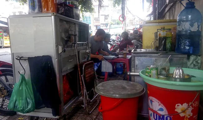 Một điểm bán nước giải khát trên lề đường Huỳnh Tịnh Của, phường 8, quận 3