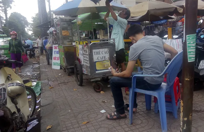 Ghé vào một xe nước trên lề đường Huỳnh Tịnh Của, quận 3, người bán vừa làm nước vừa ngó trước nhìn sau, trông vẻ mặt rất căng thẳng. Chị cho biết, bây giờ quận đang làm rất căng, xe nước của chị đã bị phạt cả chục lần rồi nên bây giờ rất hồi hộp, không biết xe tịch thu lúc nào. “Biết là mình làm ăn lương thiện, nhưng mình chiếm vỉa hè, đẩy người đi bộ đi dưới lòng đường thì cũng thật áy náy” chị phân trần.