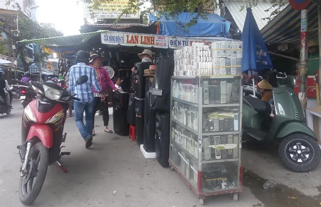 Trên đường Nhật Tảo, quận 10, nhiều cửa hàng kinh doanh không những chiếm trọn vỉa hè mà còn lấn xuống dưới lòng đường để buôn bán