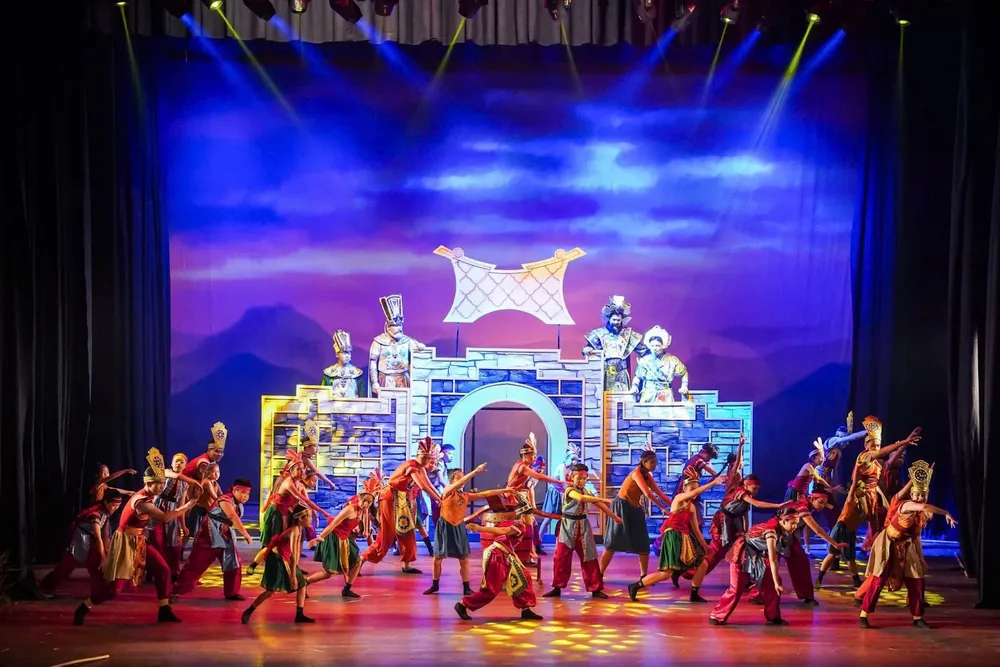 Bối cảnh vở diễn trải dài qua 6 phân cảnh chính, đặt trong không gian huyền thoại của cung điện Nam An và hoàng cung Bình Nguyên, xen kẽ với các phân đoạn dân gian ngoài trời được dàn dựng công phu. Từng chi tiết – từ thiết kế phục trang truyền thống, đạo cụ thủ công, cho đến âm nhạc giao thoa Đông – Tây và ánh sáng hiện đại – đều góp phần tạo nên một sân khấu chuyên nghiệp, không thua kém các vở nhạc kịch quốc tế.