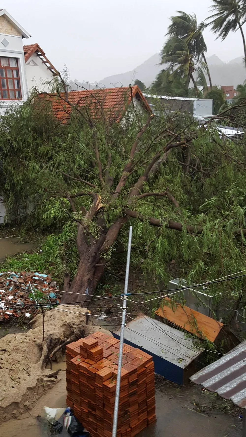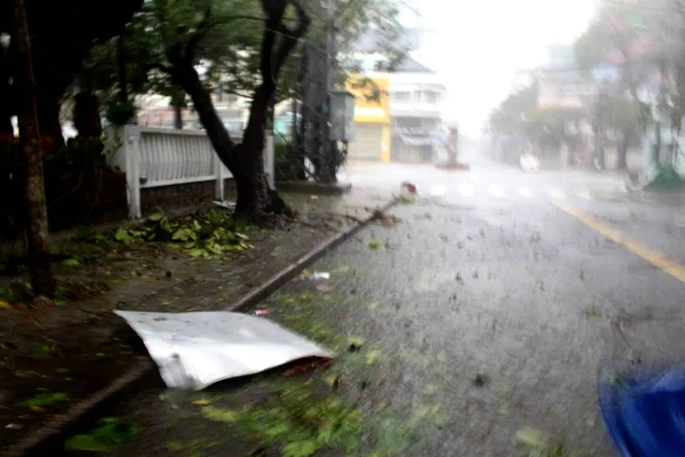 Người dân tỉnh Khánh Hòa không dám ra đường vì tôn bay tung tóe khắp nơi, cây xanh gãy đổ hàng loạt.