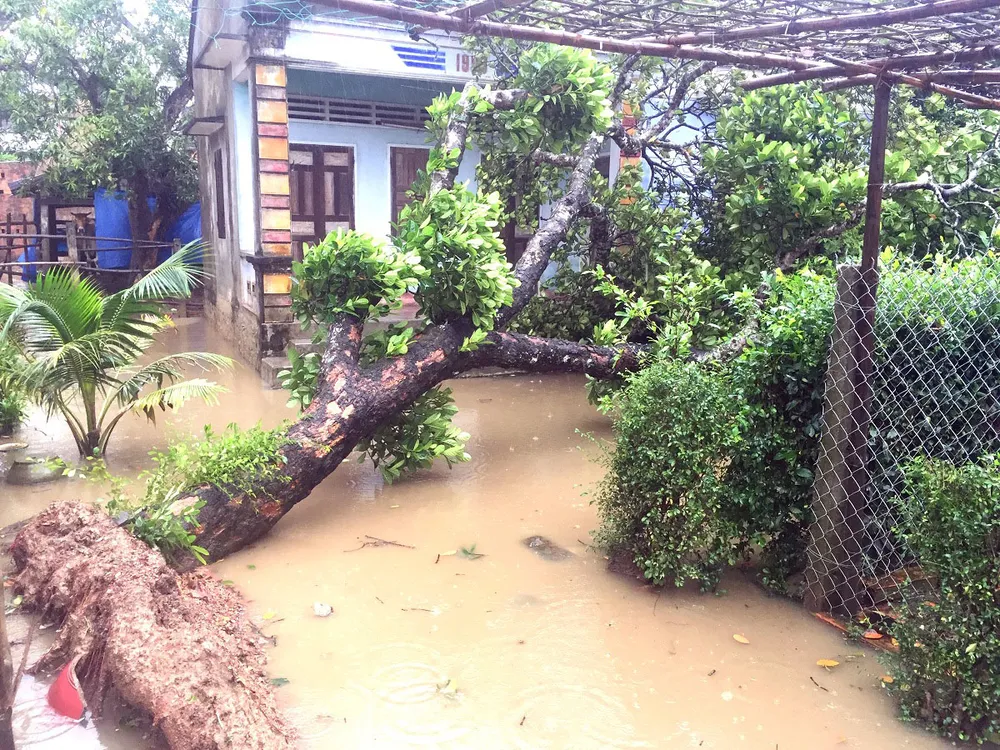 Tuy không phải tâm bão nhưng từ tối 3-11 đến sáng 4-11, tại tỉnh Bình Định xảy ra mưa lớn kèm theo gió lốc giật mạnh đã khiến nhiều cây cối, công trình, đường giao thông, nhà cửa bị đổ gãy, ngập hư hại…