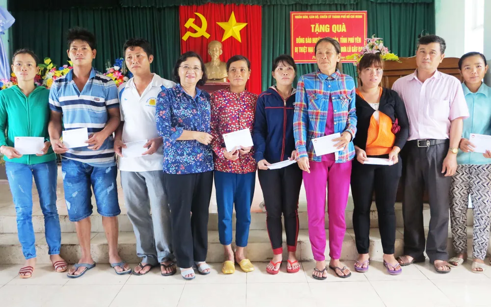 Ngày 10-11, Đoàn công tác Thành ủy TPHCM do đồng chí Thân Thị Thư, Ủy viên Ban Thường vụ Thành ủy, Trưởng Ban Tuyên giáo Thành ủy TPHCM dẫn đầu cùng lãnh đạo Ủy ban MTTQVN tỉnh Phú Yên trao tặng 55 suất quà cứu trợ các hộ dân xã Hòa Xuân Nam (huyện Đông Hòa, tỉnh Phú Yên) bị thiệt hại nặng do bão số 12 gây ra.