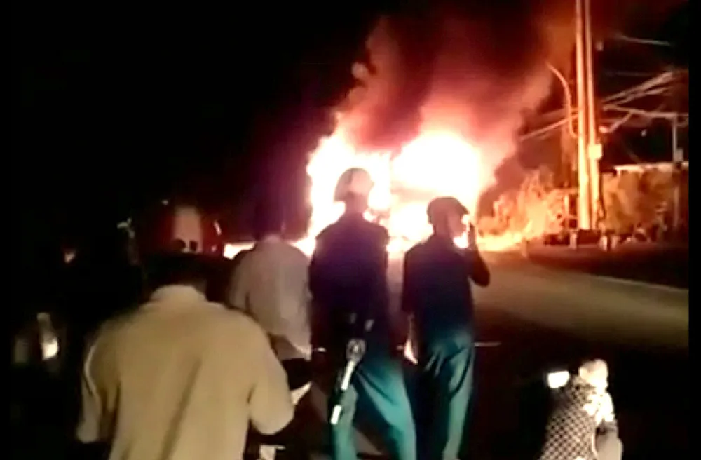 Chiếc xe khách bốc cháy trơ khung vào giữa đêm trên QL 1A, thuộc địa bàn huyện Thạnh Trị, tỉnh Sóc Trăng