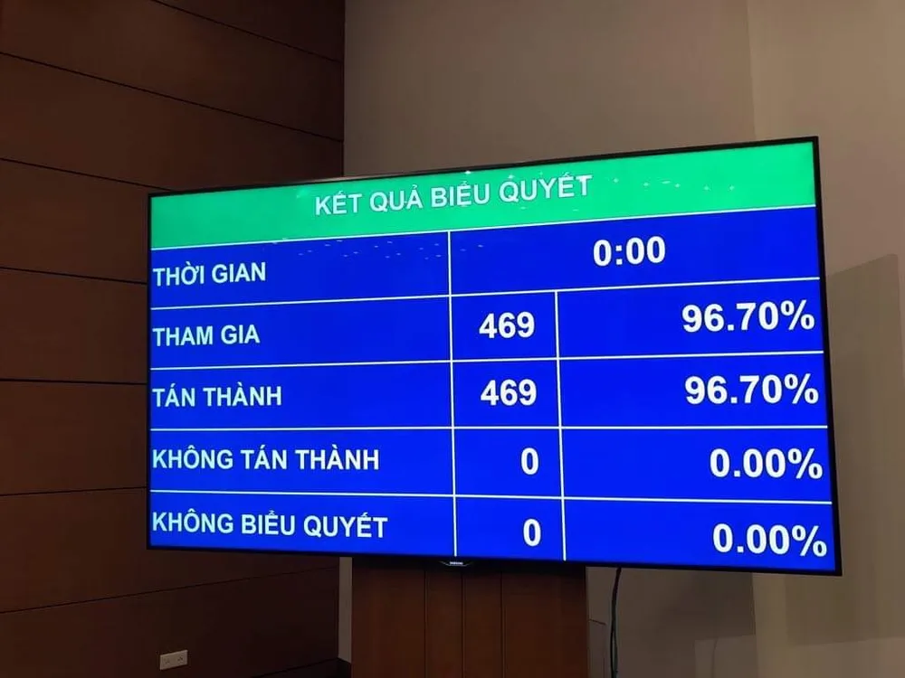 Với tổng số 469 phiếu tán thành, chiếm tỷ lệ 100% tổng số ĐBQH có mặt, chiều nay 12-11, Quốc hội đã biểu quyết thông qua Nghị định phê chuẩn CPTPP.