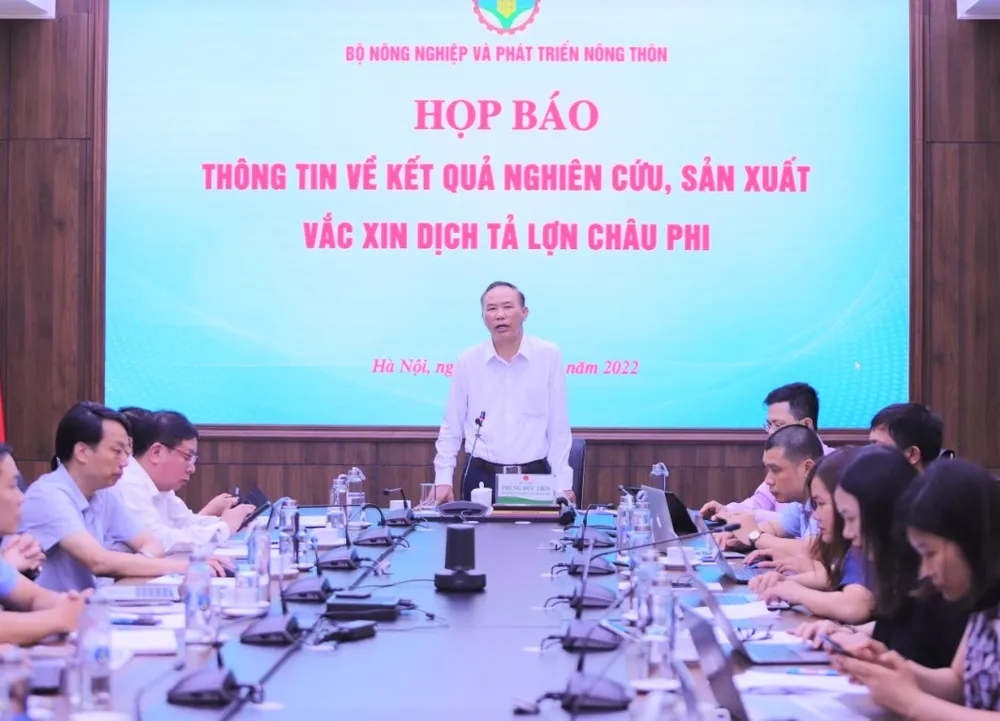 Chủ trì họp báo, Thứ trưởng Bộ NN-PTNT Phùng Đức Tiến khẳng định, Việt Nam đã chính thức sản xuất được vaccine phòng dịch tả heo châu Phi, đáp ứng được các yêu cầu chuyên môn kỹ thuật, bảo đảm vô trùng, an toàn và hiệu lực, độ dài miễn dịch kéo dài 6 tháng.