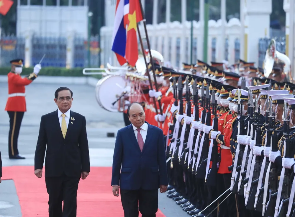 Chiều 16-11, tại tòa nhà Chính phủ ở Thủ đô Bangkok, Thái Lan, sau lễ đón trọng thể, Chủ tịch nước Nguyễn Xuân Phúc đã hội đàm với Thủ tướng Thái Lan Prayut Chan-o-cha.
