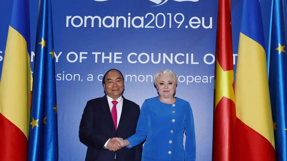 | Một trong những trọng tâm của chuyến thăm lần này của Thủ tướng Nguyễn Xuân Phúc là đề nghị Romania, trên cương vị Chủ tịch EU, ủng hộ mạnh mẽ việc phát triển quan hệ Việt Nam - EU; thúc đẩy EU sớm ký, phê chuẩn Hiệp định Thương mại tự do Việt Nam - EU (EVFTA) góp phần thúc đẩy hợp tác thương mại - đầu tư giữa Việt Nam và EU nói chung và Việt Nam - Romania nói riêng. |