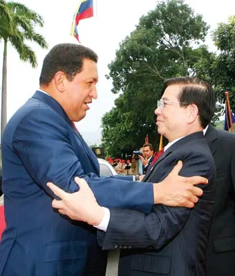 Tháng 11-2008, Chủ tịch nước Nguyễn Minh Triết sang thăm chính thức Venezuela theo lời mời của Tổng thống Hugo Chavez (ảnh - bìa trái). Đây là chuyến thăm đầu tiên của người đứng đầu Nhà nước ta tới Venezuela. Tổng thống Hugo Chavez, dịp này, đã trao tặng Chủ tịch nước Nguyễn Minh Triết huân chương mang tên người anh hùng Simon Bolivar, huân chương cao quí nhất của Nhà nước Venezuela và đã ký quyết định mở một quỹ trị giá 200 triệu USD nhằm hỗ trợ triển khai các dự án hợp tác giữa hai nước. Ngoài ra, hai bên cũng đã ký 15 hiệp định, thỏa thuận hợp tác, trong đó, đáng chú ý là hợp đồng thiết lập liên doanh khai thác dầu khí công suất 200.000 thùng/ngày tại vành đai Orinoco thuộc Venezuela, nơi được coi là khu vực có trữ lượng dầu lớn nhất thế giới…