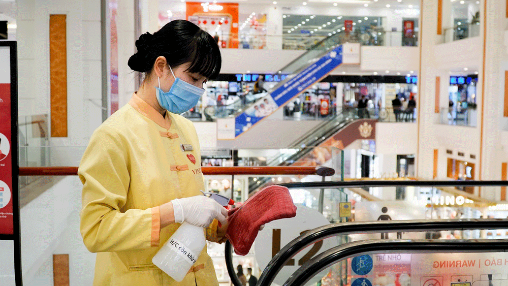 Nhằm mang lại môi trường mua sắm tiện nghi và an toàn cho khách hàng, Vincom tiếp tục tăng cường các biện pháp phòng dịch như duy trì kiểm soát thân nhiệt người vào TTTM; vệ sinh bề mặt các khu vực công cộng với dung dịch sát khuẩn 2 tiếng/lần; bố trí bảo vệ đeo găng tay, khẩu trang mở cửa và bấm thang máy cho khách... Đây là những biện pháp chủ động đã được Vincom tiên phong triển khai ngay từ những ngày đầu của dịch Covid-19.