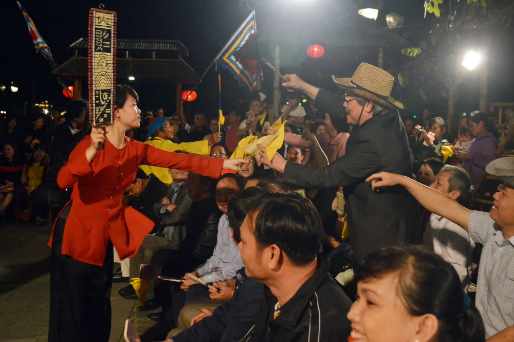 Trình diễn bài chòi tại Hội An thu hút sự tham gia đông đảo người dân và du khách. Ảnh: NGỌC PHÚC
